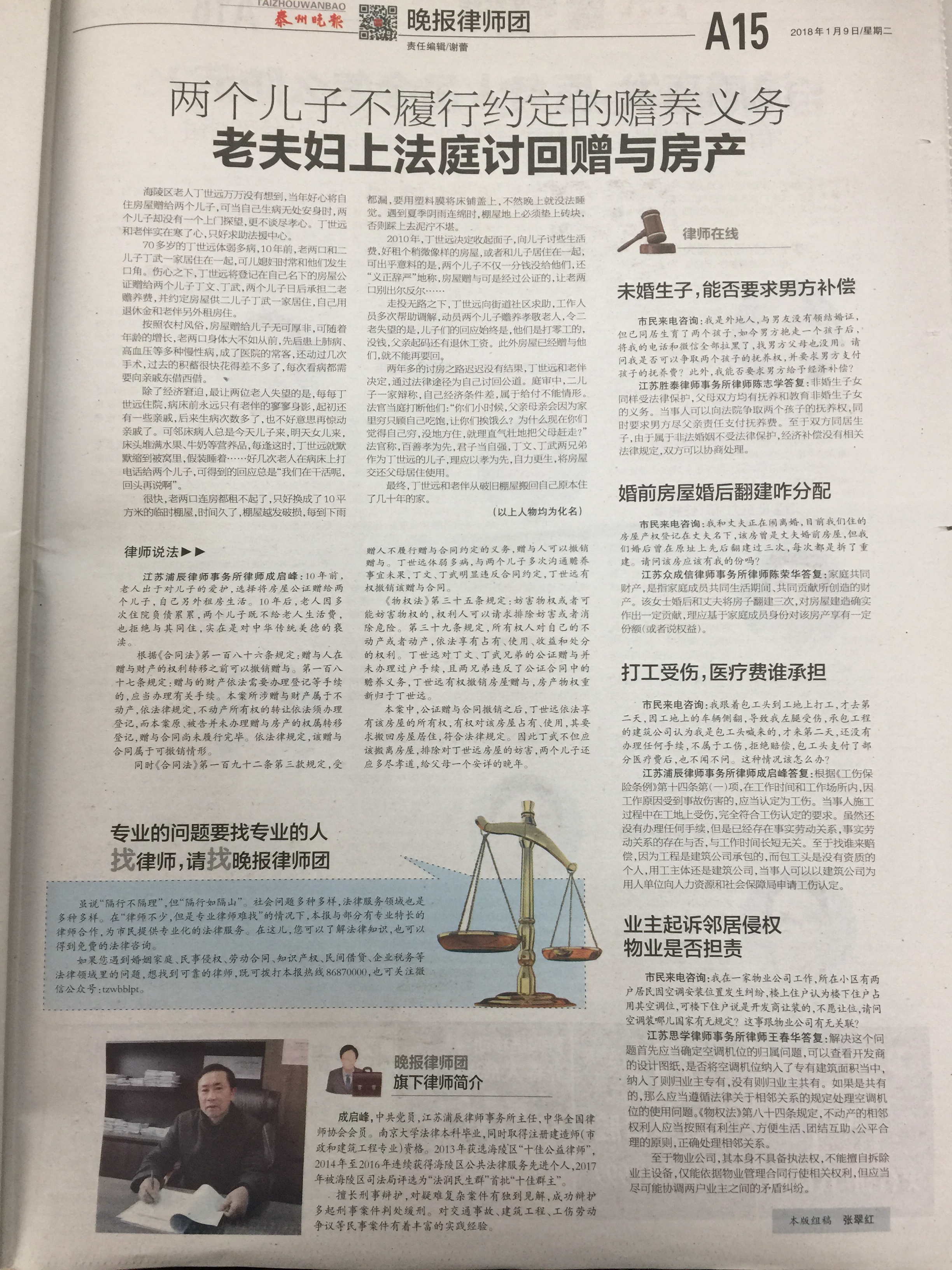 名贤集有云:家贫知孝子,国乱识忠臣。家住海陵区的丁